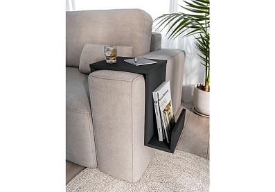 Полка изготовлена из ЛДСП и МДФ серого цвета.