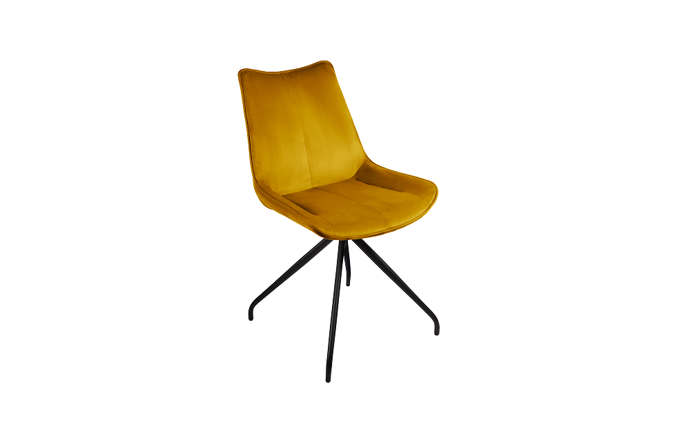 Стул Барса с поворотным механизмом прекрасно впишется в любой интерьер и комнату. Такой стул можно использовать как в качестве обеденного стула, так и в виде рабочего кресла к письменному столу. Обивка из микровелюра в актуальном горчичном оттенке прекрасно гармонирует с металлическими ножками черного цвета. Такие стулья украсят современные интерьеры, а также пространства в стиле эклектики.