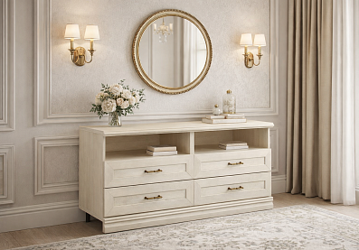 • Тумба с четырьмя выдвижными ящиками — два ящика друг над другом в каждом отделении тумбы;