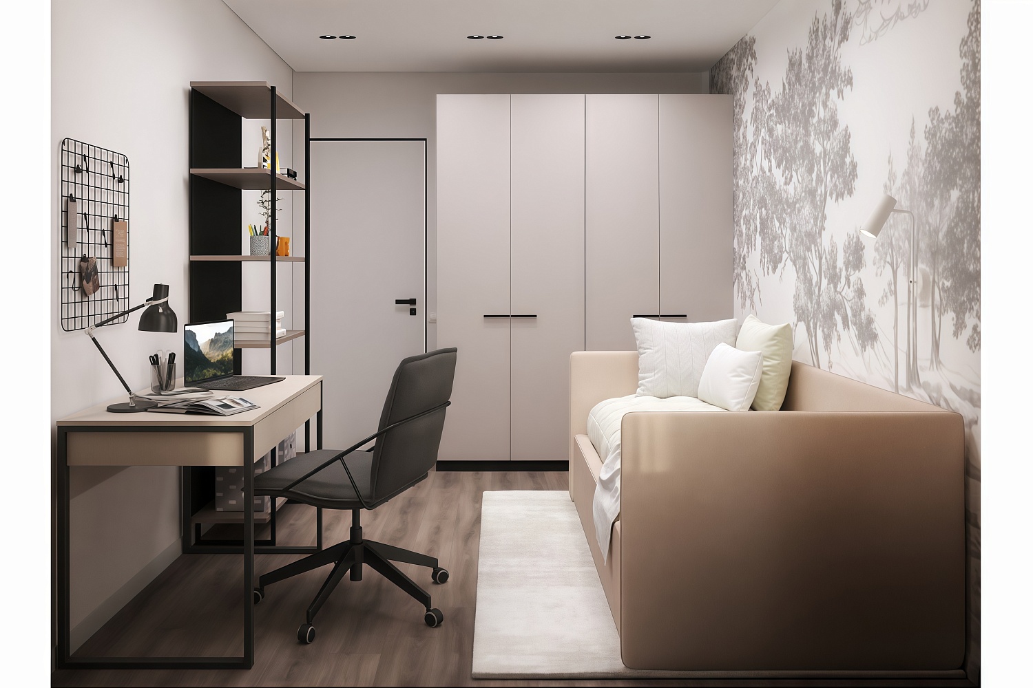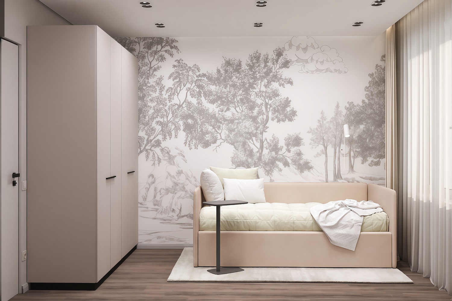 – описание: стиль современный, минимализм, назначение для дома, цвет кашемир серый, размер спального места 90 х 200 см.