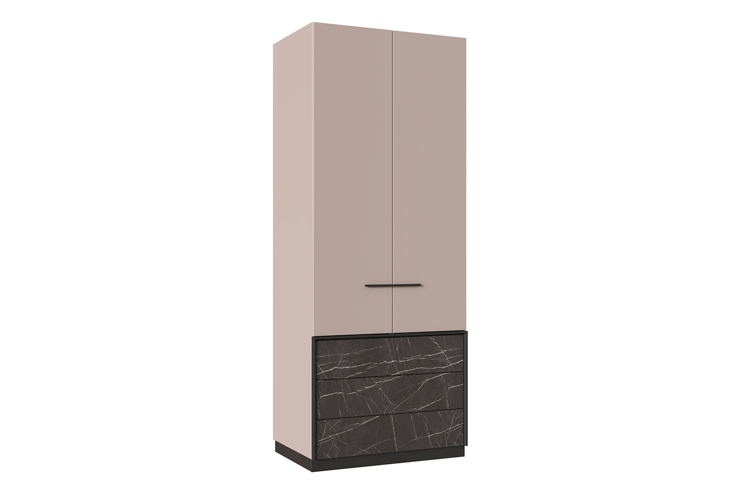 • Шкаф двухдверный с одной полкой ЛДСП и тремя выдвижными ящиками;
